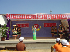 此次我系“三下乡”活动,受到了公主岭市教育局领导的高度重视,刘秀岩副局长莅临现场,参加了基地成立暨捐赠仪式,并饶有兴趣地观看了联袂文艺汇演。会上,刘副局长对两校的合作表示祝贺,并希望今后双方能够在办学方面进一步加强沟通与合作,为两校建设共同努力。