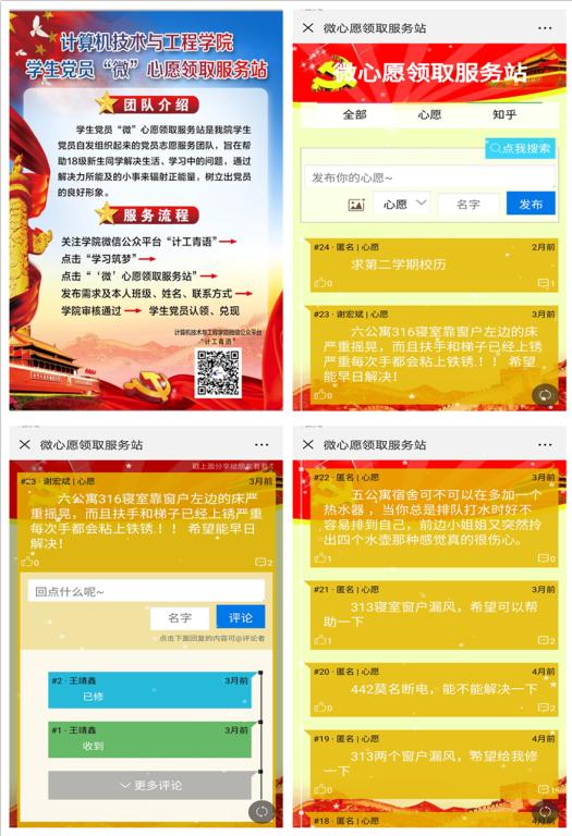 学生党员“微心愿”领取服务站创立于2018年7月,是由计算机技术与工程学院学生自发组织起来的党员志愿服务团队,旨在帮助2018级同学解决生活、学习中的问题,通过解决力所能及的小事来辐射正能量,树立出党员的良好形象。