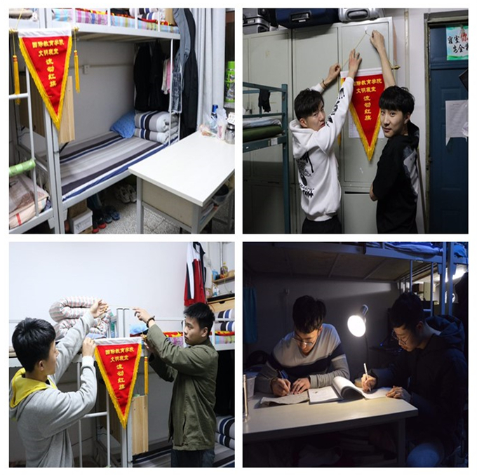 通过实施“环境育人”养成教育计划,现在,国际教育学院涌现了大量具有专业文化特色的学生公寓,公寓内不文明现象显著减少,学习氛围逐步升温。