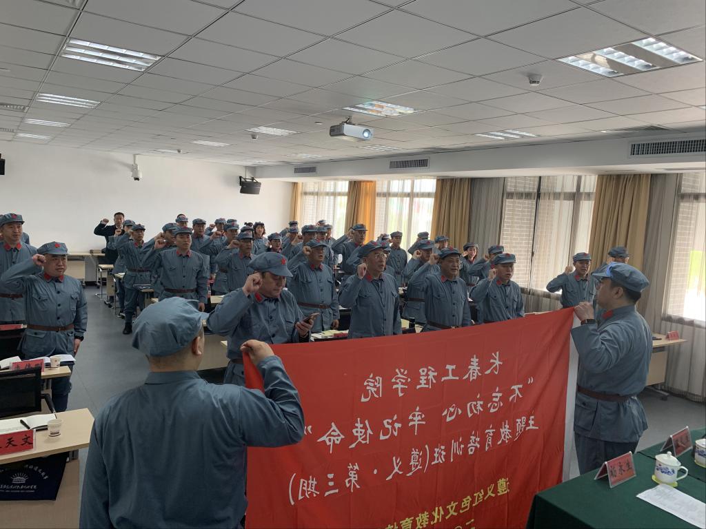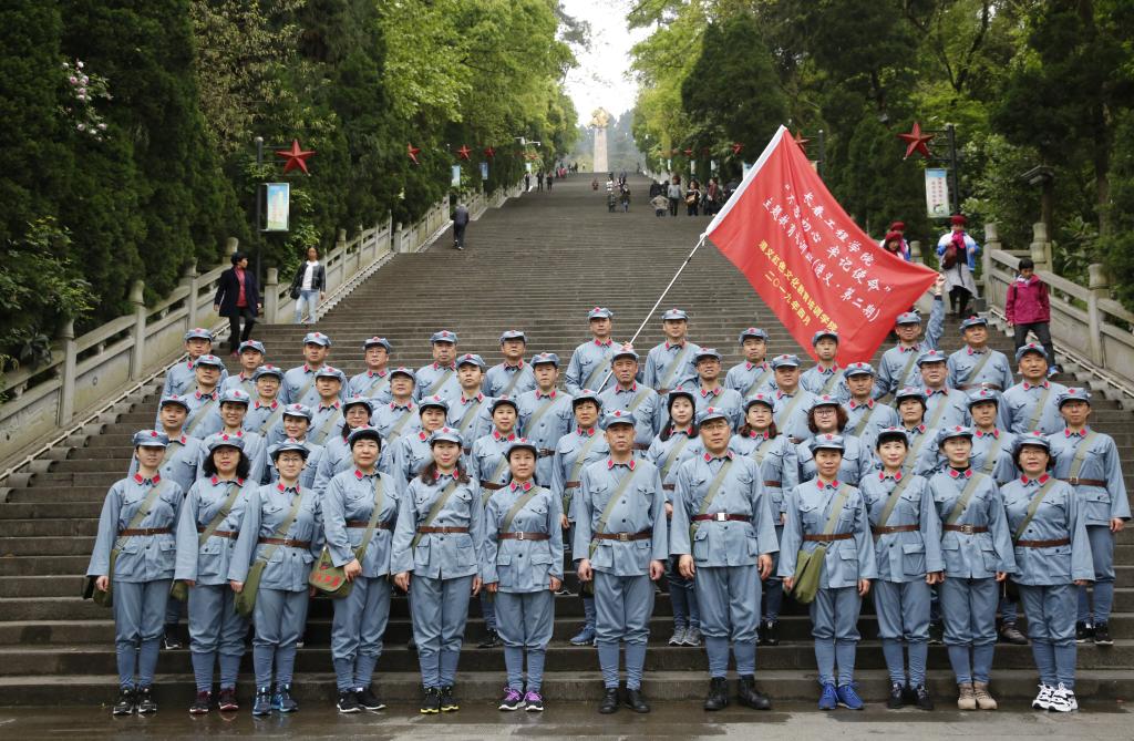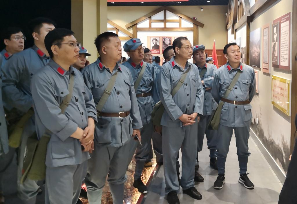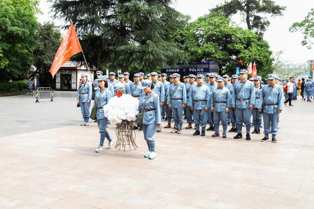 在邓小平题写的“红军烈士永垂不朽”纪念碑前,全体学员向红军烈士献上了花篮,大家面对鲜红的党旗庄严地举起右手,重温了入党誓词。
