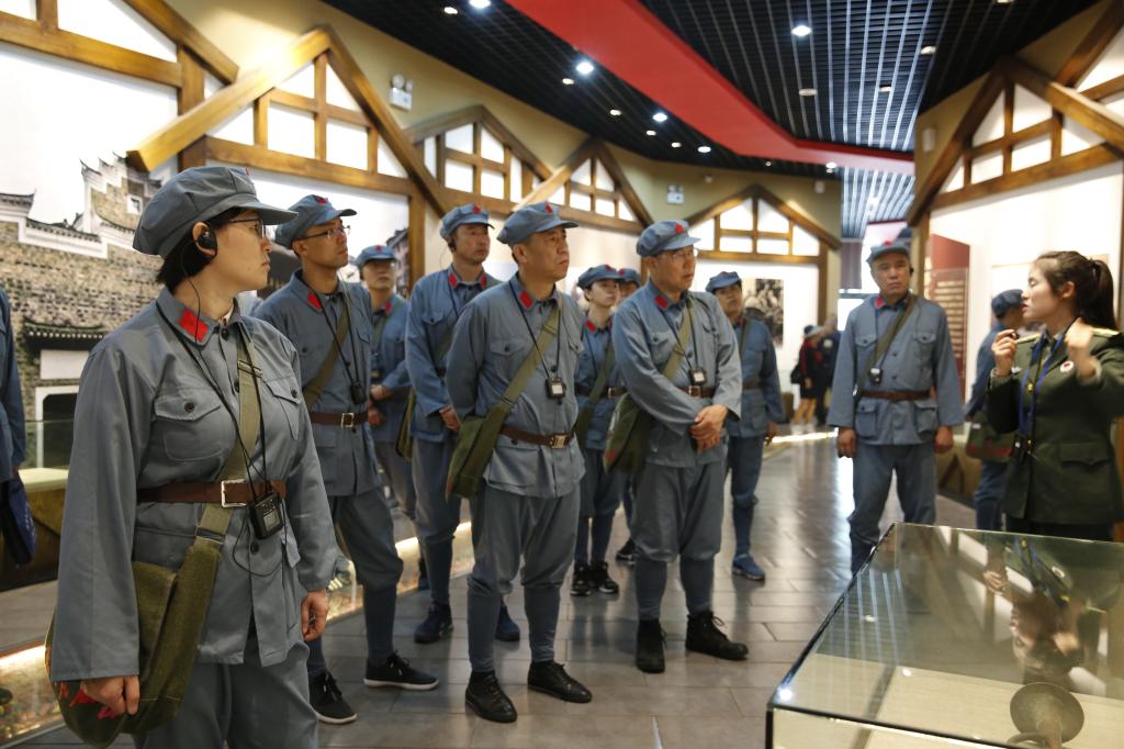 “横断山,路难行。天如火,水似银。亲人送水来解渴,军民鱼水一家人。横断山,路难行。敌重兵,压黔境。战士双脚走天下,四渡赤水出奇兵。乌江天险重飞渡,兵临贵阳逼昆明。敌人弃甲丢烟枪啊,我军乘胜赶路程。调虎离山袭金沙,毛主席用兵真如神。”——“四渡赤水”纪念馆里,学员们凝神静听四渡赤水变被动为主动的光辉史实,感受着漫漫长征路上红军经受的严峻考验……这段波澜壮阔的历史随着讲解员的娓娓道来而变得生动、鲜活起来。大家既敬佩于革命前辈运筹帷幄、扭转乾坤的英明胆识,也感叹于红军钢铁般的意志和中国革命道路的曲折艰辛。