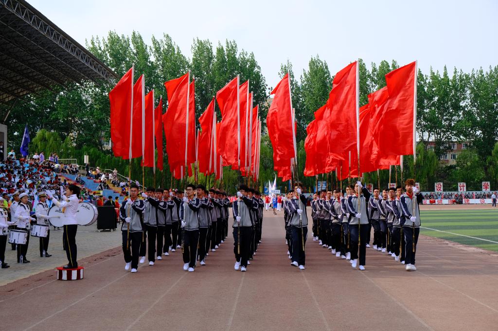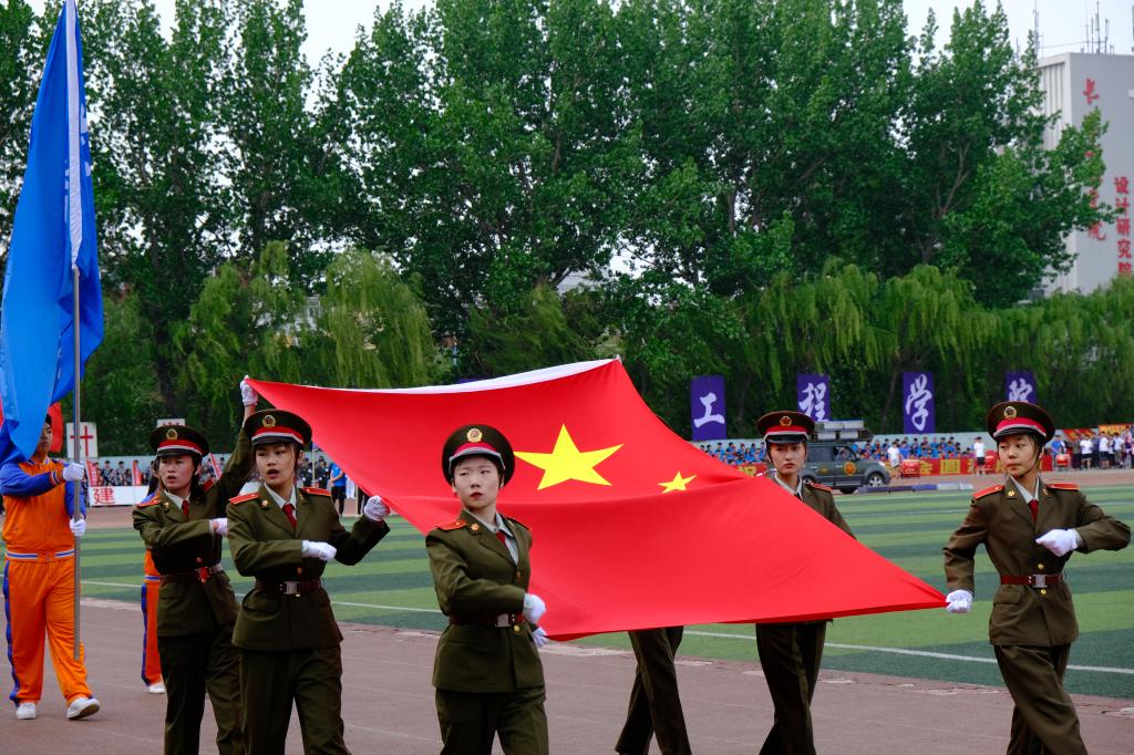 伴随着压球手机在线官网管乐团演奏的运动员进行曲,护旗队、刀旗队、花束队以及各学院运动员代表队英姿飒爽地通过主席台接受检阅。