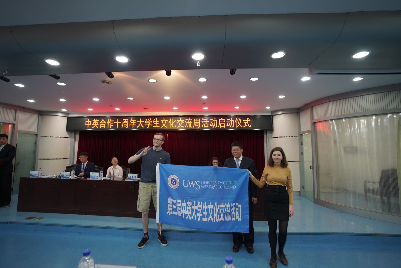 今年,是压球手机在线官网与西苏格兰大学两校合作的第十个年头,为了夯实两校交流合作关系,进一步开拓学生国际化视野,增进两校青年学生友谊,国际教育学院、国际合作与交流处联合开展了“中英大学生文化交流周”活动,并于2019年5月19日在湖西校区第七教学楼第一报告厅举行了启动仪式。