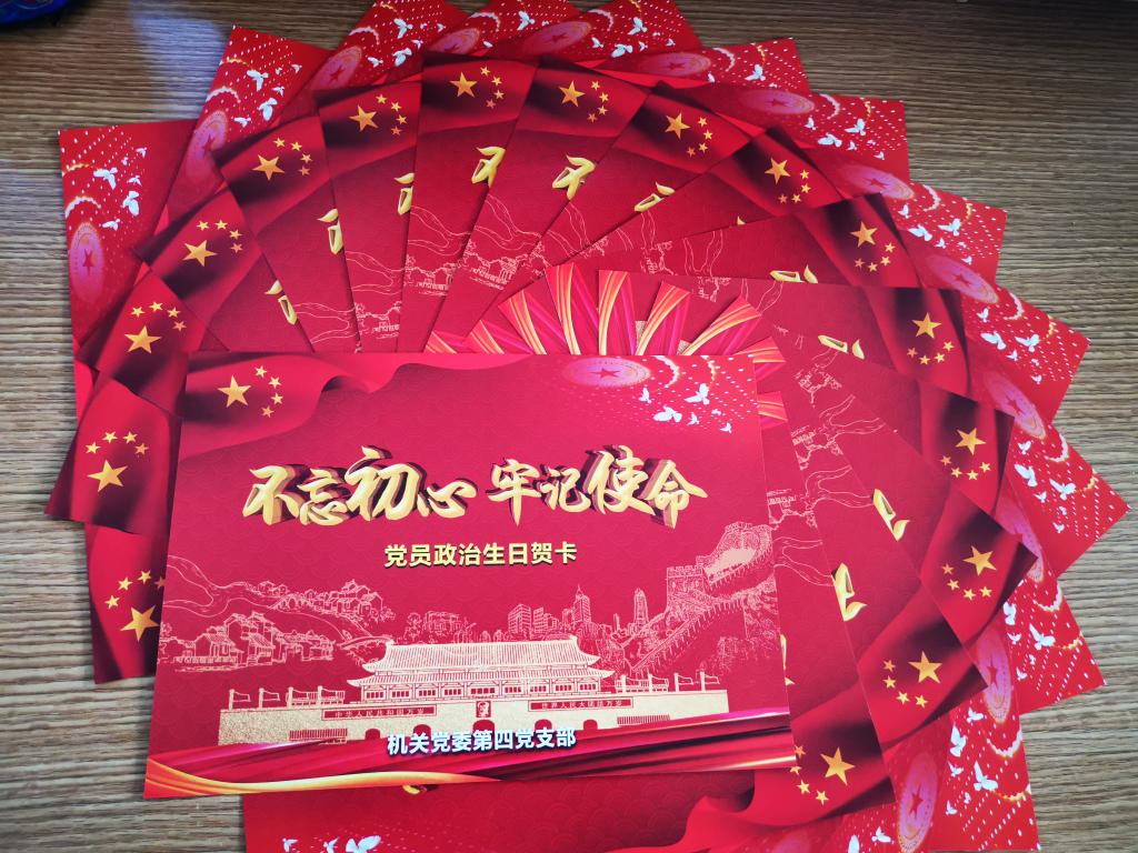 机关党委第四党支部召开全体党员大会,组织全体党员共同过了一个难忘的“政治生日”。支部通过开展“五个一”活动,即赠送一张“党员政治生日”贺卡、重温一次入党誓词、进行一次谈心谈话、进行一次集中学习、畅谈一次体会感悟,为全体党员庆贺“政治生日”。会上,全体党员围绕着“当初入党为什么,如今在党做什么,今后为党留什么”畅谈了个人的心得感悟。