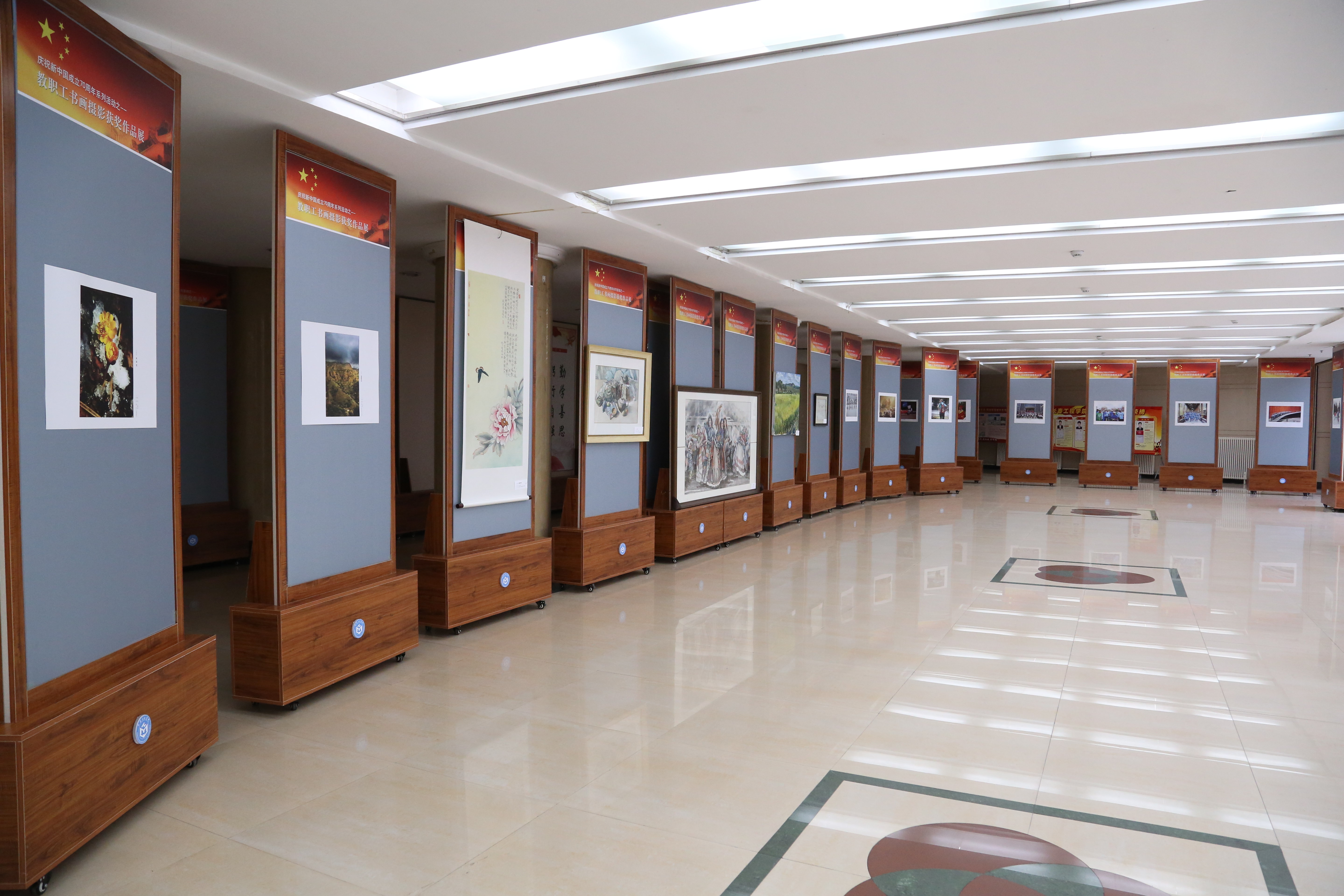 为庆祝中华人民共和国成立70周年,由压球手机在线官网党委宣传部主办,校工会、妇委会承办的庆祝新中国成立70周年教职工书画摄影展在第七教学楼一楼大厅展出。展览吸引了许多师生驻足观看。