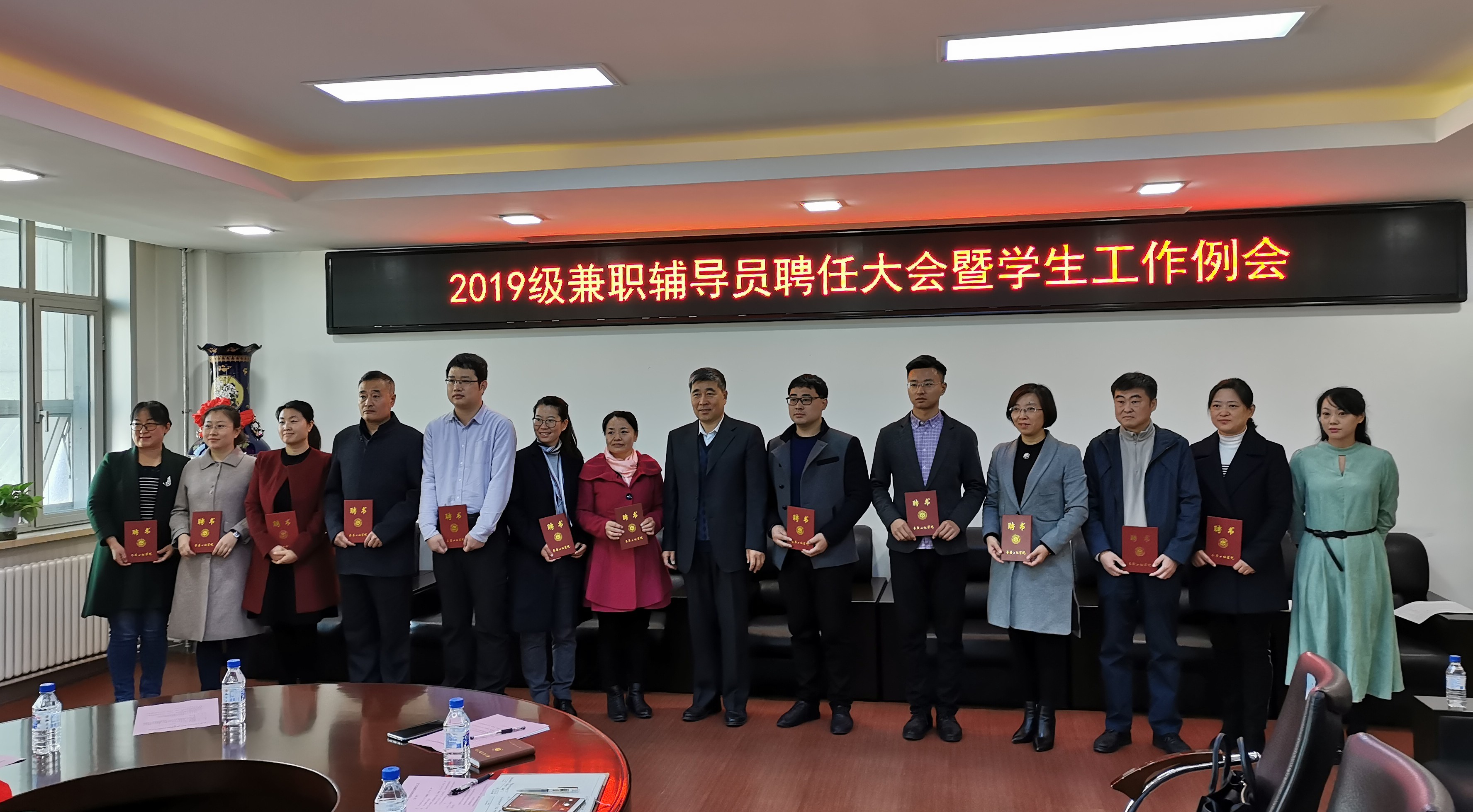 2019年10月17日,我校兼职辅导员聘任大会在第二会议室召开。校党委副书记张冀男,相关部门负责人及各学院党委副书记参加了会议。会议由党委学生工作部部长孟庆勇主持。