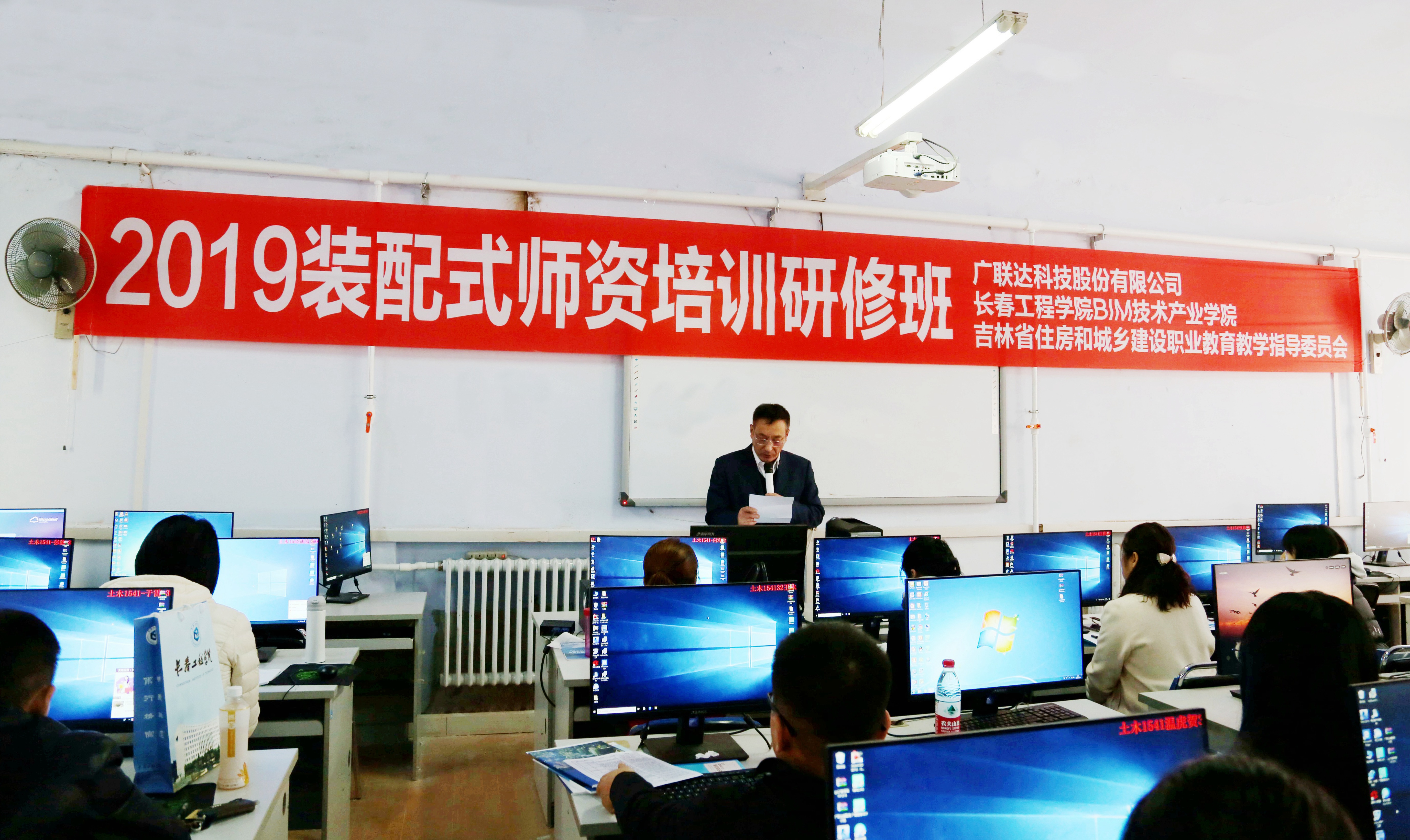 2019年11月7日至10日,由广联达科技股份有限公司 、压球手机在线官网和吉林省住房和城乡建设职业教育指导委员会主办的装配式师资培训研修班在我校成功举办。副校长窦立军出席开班仪式并致辞,来自省内外26所高等院校的80余名教师参加了学习,并获得结业证书。