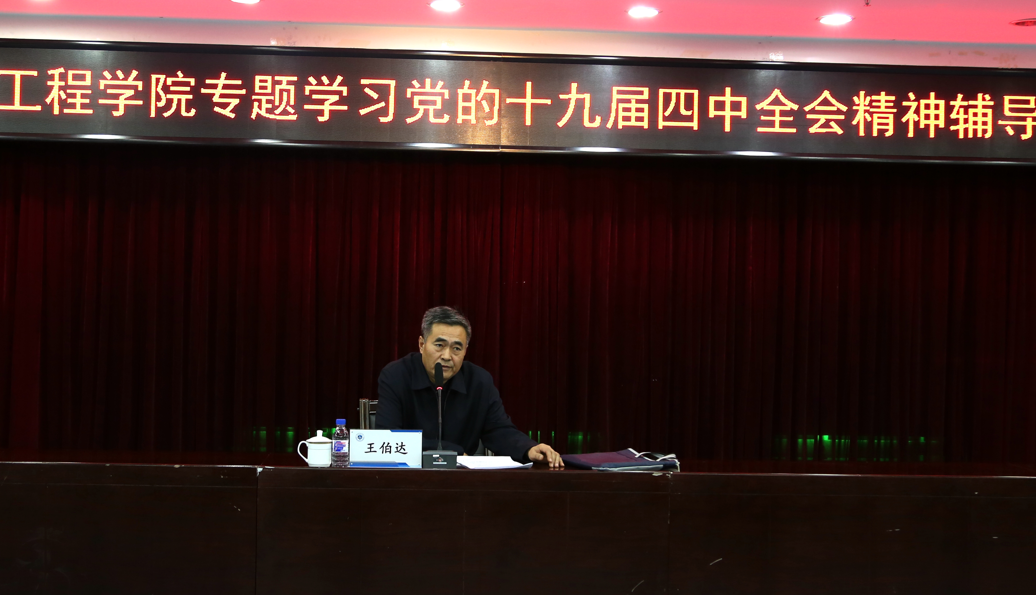 11月20日下午,压球手机在线官网在第一报告厅举办十九届四中全会辅导报告会。报告由压球手机在线官网统战部部长、机关党委书记王伯达主讲,全校副处级以上干部聆听报告。王伯达从党的十九届四中全会召开的背景、重大意义,中国特色社会主义制度和国家治理体系的显著优势,党的十九届四中全会决议提出的总体要求、总体目标和重点任务等方面深入浅出地做了报告,系统梳理了党的十九届四中全会提出的一系列重要理论观点和重大改革举措,及深刻的历史意义。会议由党委副书记温义生主持。