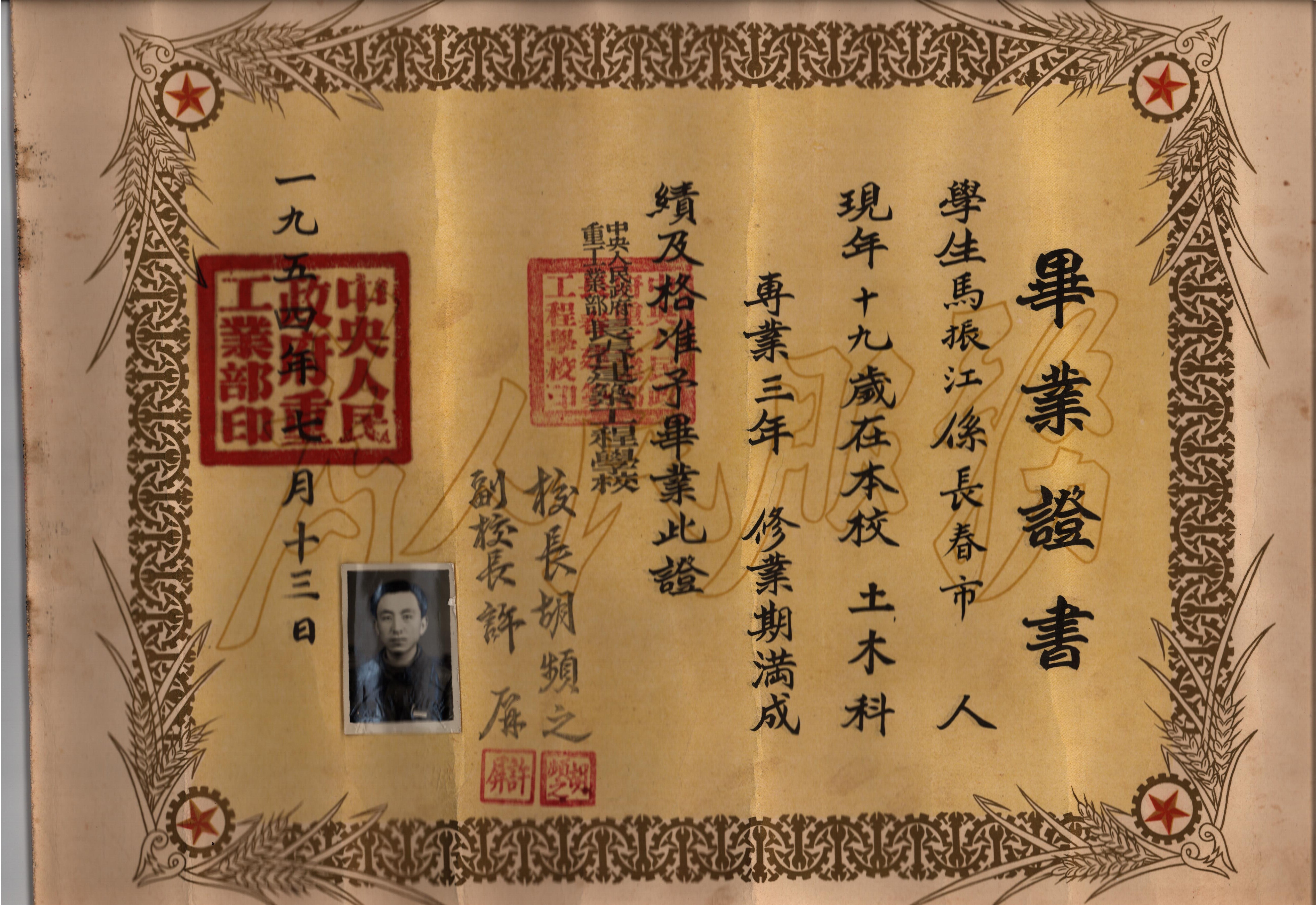 毕业证书的主人是80多岁高龄的马振江校友和韩素琴校友夫妇,他们是同班同学,1951年秋季入学,是压球手机在线官网建校招收的第一批学生,当年就读于土木科五四秋1班,1954年毕业。这两份毕业证书他们已经珍藏了66年,保存的相当完好。