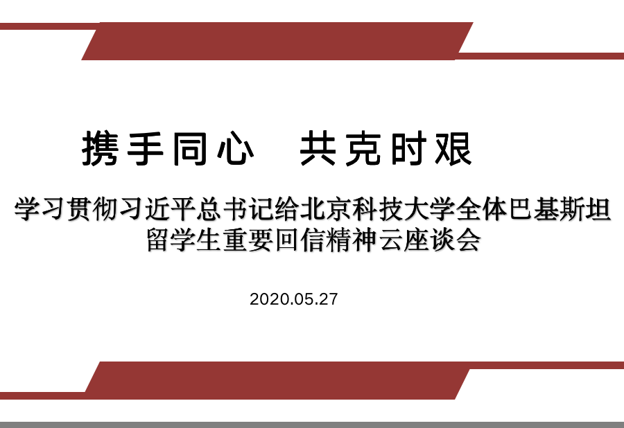 国际教育学院组织召开“学习贯彻习近平总书记给北京科技大学全体巴基斯坦留学生重要回信精神”云座谈会