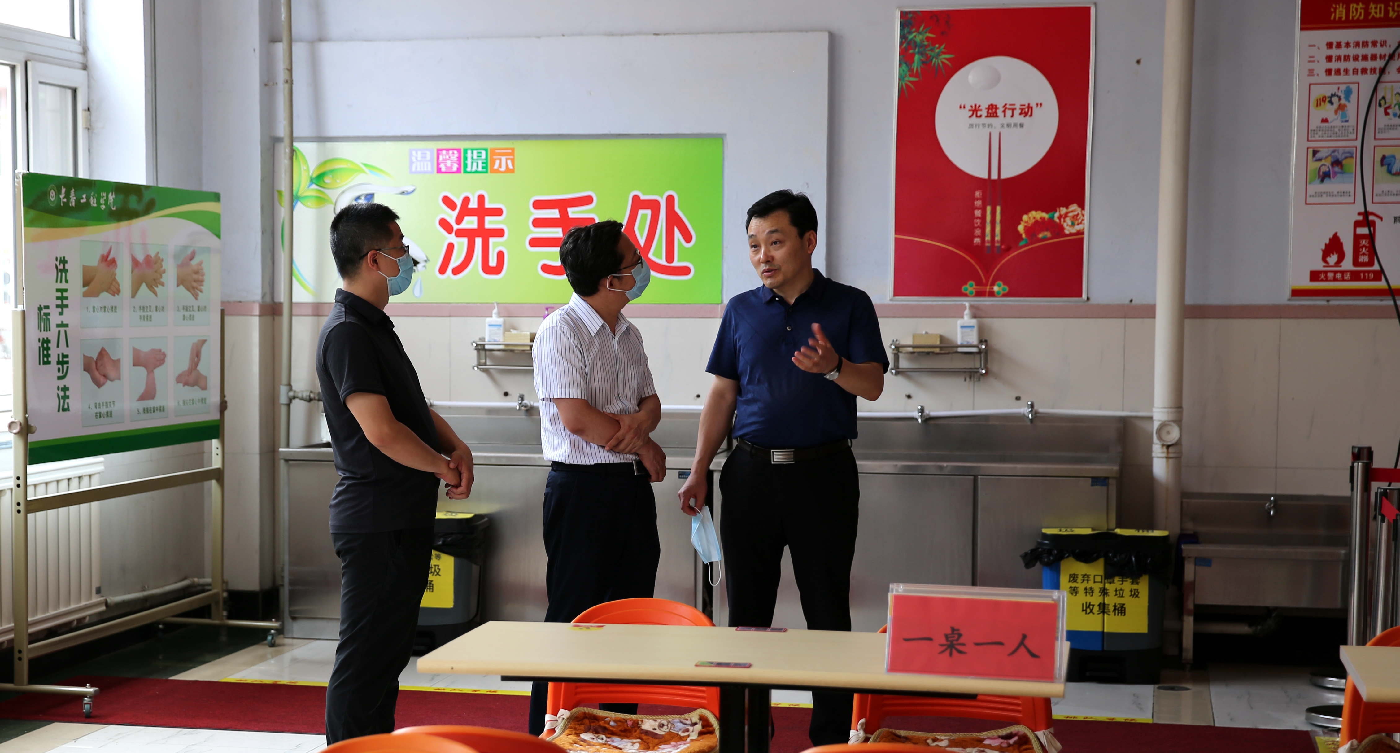 督查组先后深入到饮食中心、学生公寓、校医院、隔离点等地开展实地检查指导。在饮食中心,督查组检查了各环节防控措施和责任分工情况,重点对餐具消杀、师生就餐流程等进行详细了解。在学生公寓,督查组查看了各项防控工作流程和工作预案。在校医院,督查组详细了解疫情防控各项措施落实、防疫物资储备、隔离区设置等情况。