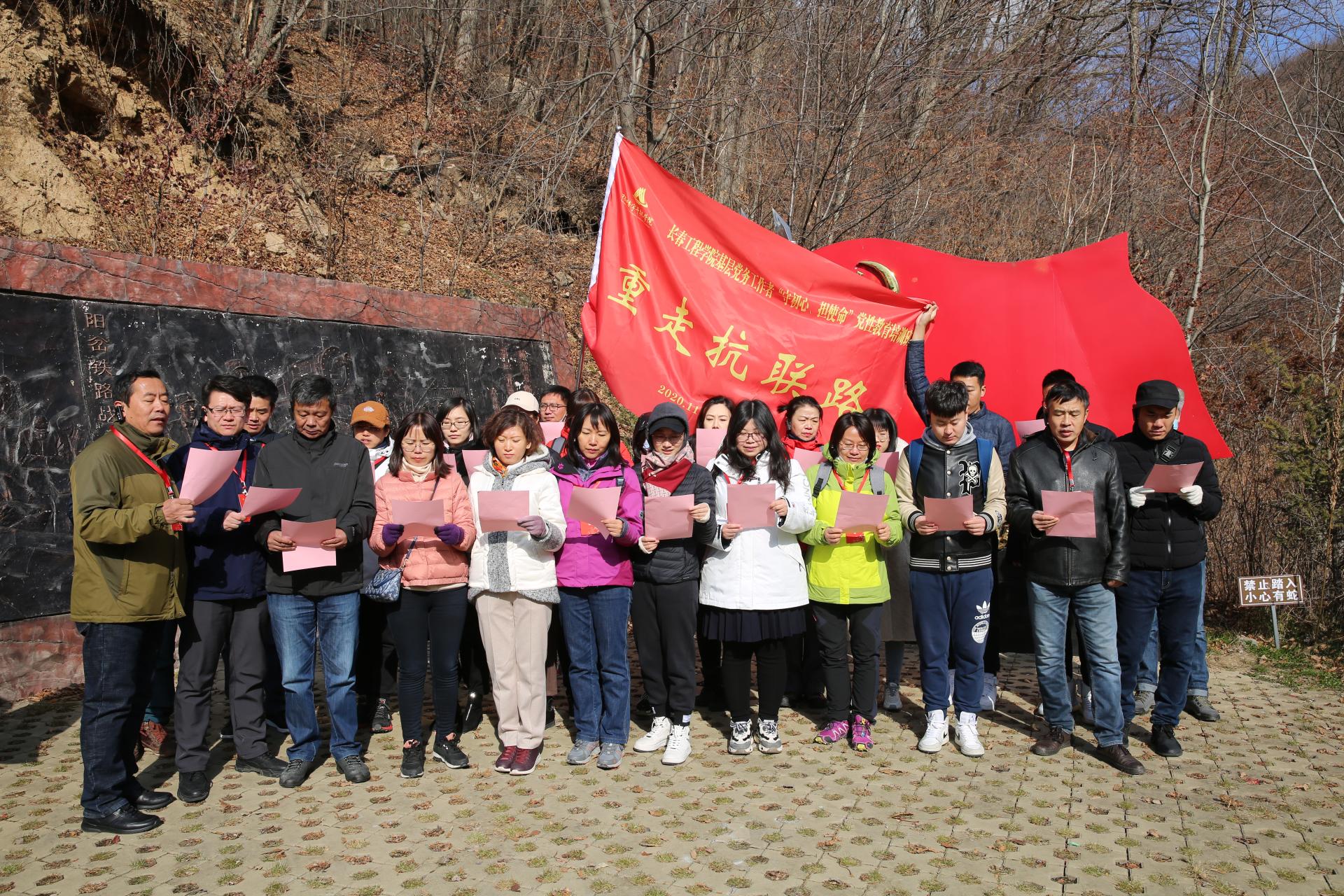 11月3日,培训班学员来到杨靖宇干部学院宣誓广场重温入党誓词,参加“重走抗联路”出发仪式。