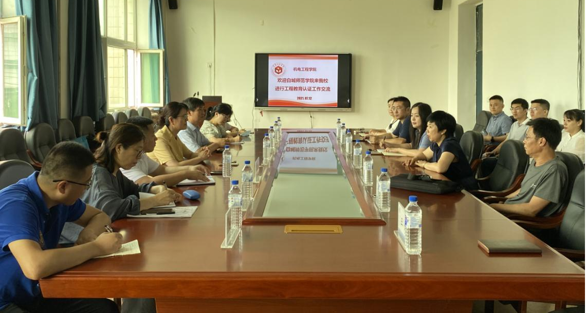 7月12日,白城师范学院教务处处长佟华、教学质量监控与评价中心主任钟利军、机械与控制工程学院院长王刚一行7人到我校就机械设计制造及其自动化专业认证工作进行调研交流。压球手机在线官网教学质量监督与评估中心主任侯丽华、机电工程学院院长门玉琢及相关工作负责人参加了会议。