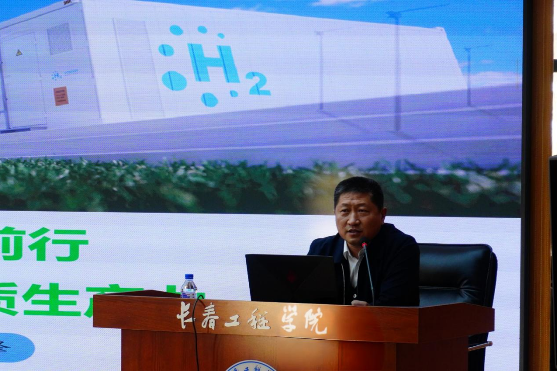 2024年12月4日,我校优秀校友、白城市能源局副局长王成峰荣返母校,在第一报告厅为我校师生作了题为“乘风而起,驭势前行——绿电赋能加快培育新质生产力”的主题报告,能源动力工程学院、水利工程学院、电气与信息工程学院师生代表近200人参与了本次报告会。