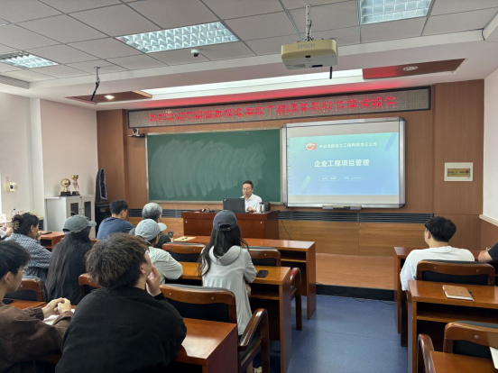 报告会上,范韶辉总经理从行业一线的视角,深入剖析了现代企业工程项目管理的核心理念和方法体系,详细讲解了企业层面的项目管理流程与制度建设,以及项目执行中的安全、质量、进度管理和成本控制等内容。他还结合复杂工程环境下的地质工程项目管理实际问题,分享了因地制宜的应对策略和实战经验。报告结束后,范总经理与师生们就行业未来发展、大数据对行业的影响等问题进行了热烈讨论和交流。