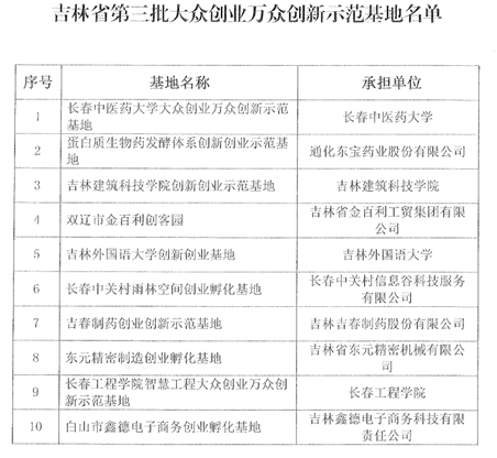 “压球手机在线官网智慧工程大众创业万众创新示范基地”被认定为吉林省第三批大众创业万众创新示范基地