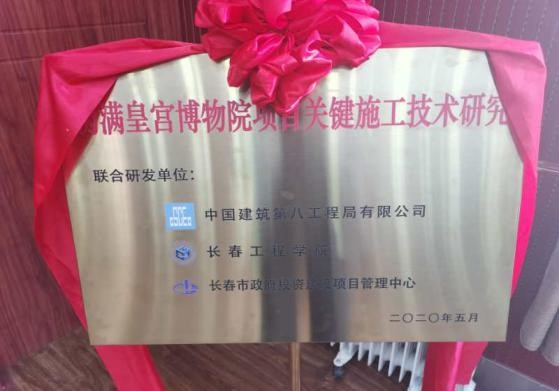 为更好开展我校与中建八局的产学研项目,确保合作顺利进行,5月7日下午,双方围绕 “伪满皇宫博物院项目关键施工技术研究”举办了开题汇报会并举行揭牌仪式,仪式在中建八局伪满皇宫博物院项目部会议室举行。