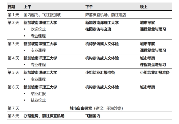 注:课程均为英文授课;专业课程列表详见附件,(内容可能会有调整),具体以南洋理工大学实际安排为准。