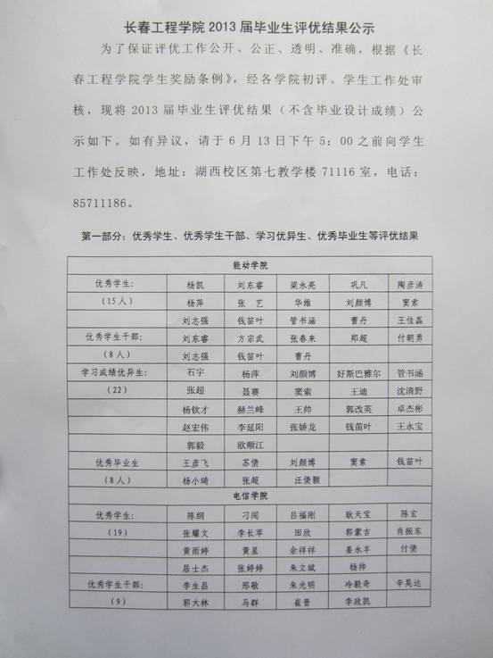 压球手机在线官网2013届毕业生评优结果公示