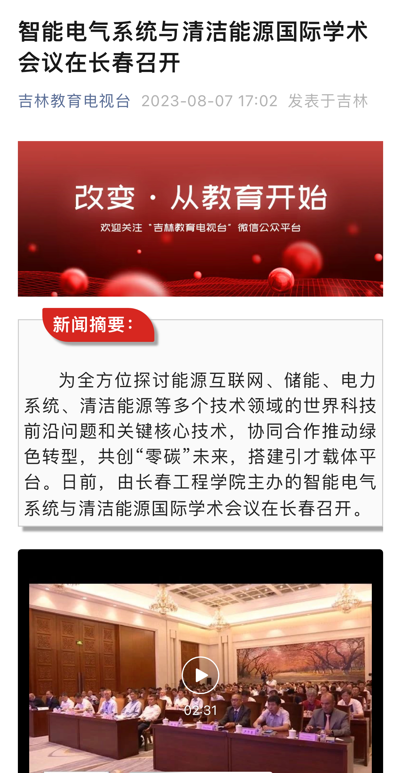 【吉林教育电视台】智能电气系统与清洁能源国际学术会议在长春召开