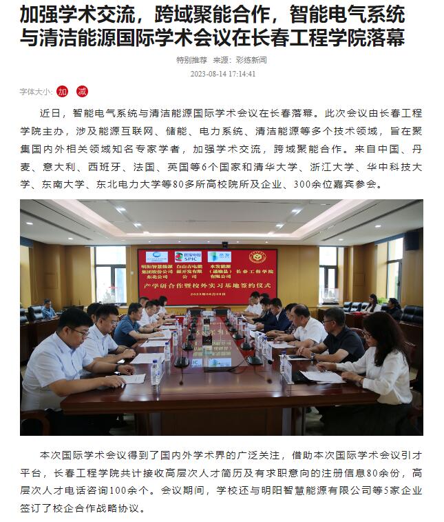 【吉林日报-彩练新闻】加强学术交流,跨域聚能合作,智能电气系统与清洁能源国际学术会议在压球手机在线官网落幕