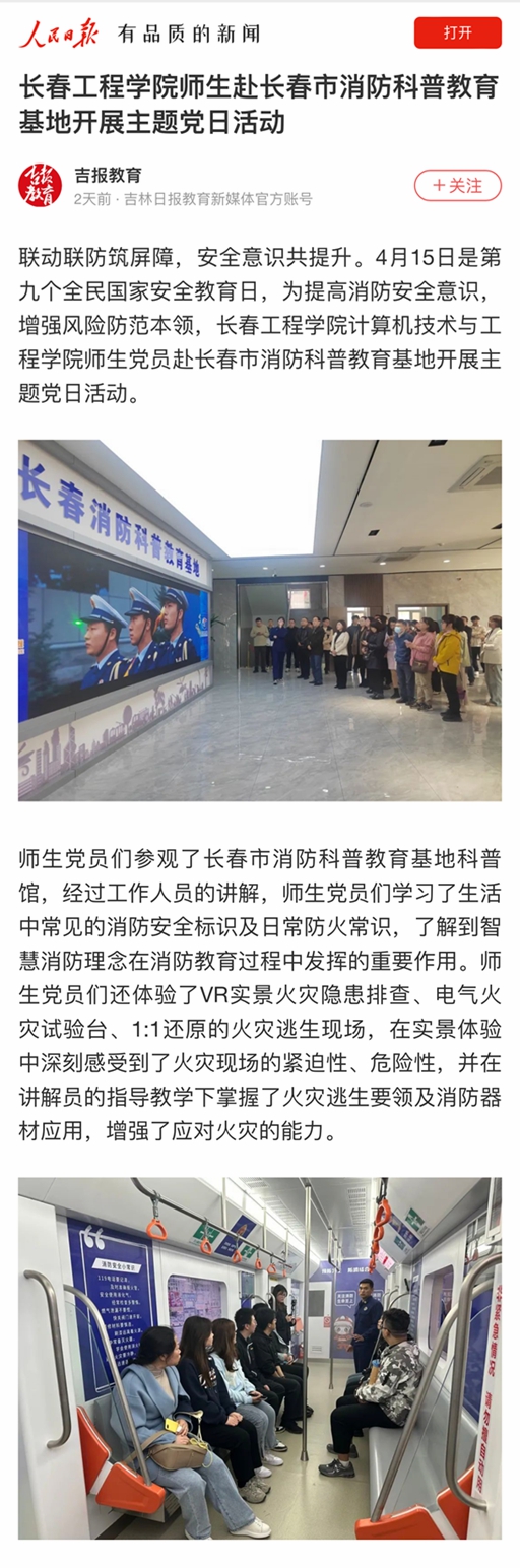人民日报、今日头条报道我校师生赴长春市消防科普教育基地开展主题党日活动