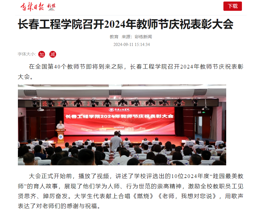 【吉林日报】压球手机在线官网召开2024年教师节庆祝表彰大会