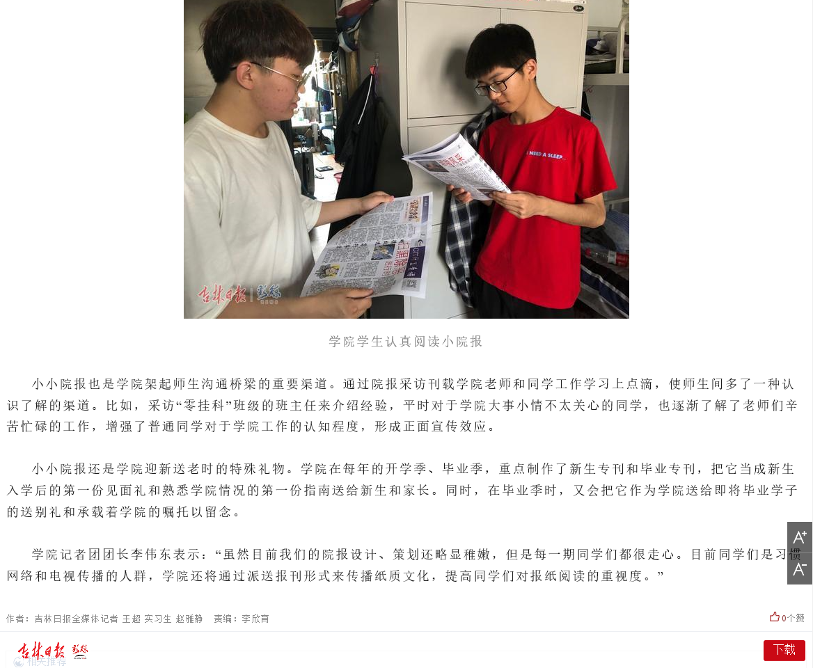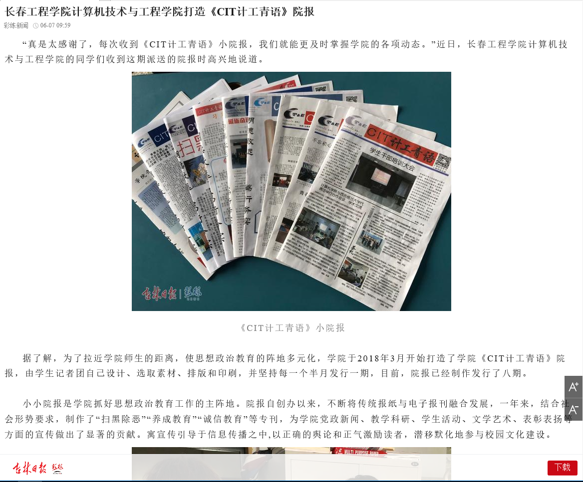【吉林日报】压球手机在线官网计算机技术与工程学院打造《CIT计工青语》院报